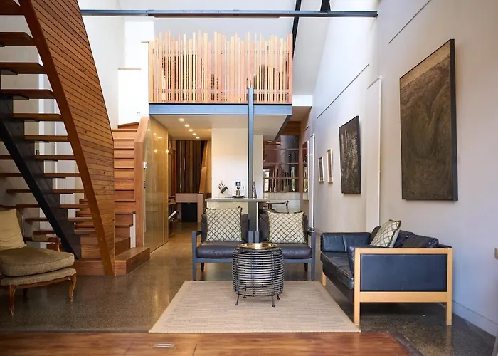 Deze 3-slaapkamer Luxury City Edge Warehouse Retreat Melbourne villa ligt 3 km verwijderd van Little Italy en nodigt gasten uit om te genieten van een terras.